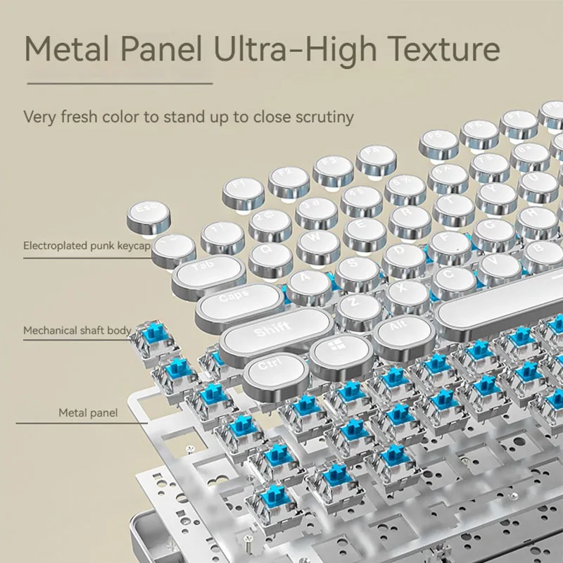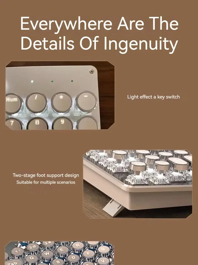 EWEADN TK950 Wireless Mechanical Keyboard, 104 Keys, White Backlit, Round Keycaps, Triple Mode BT/2.4G/Wired, for Win/Mac
