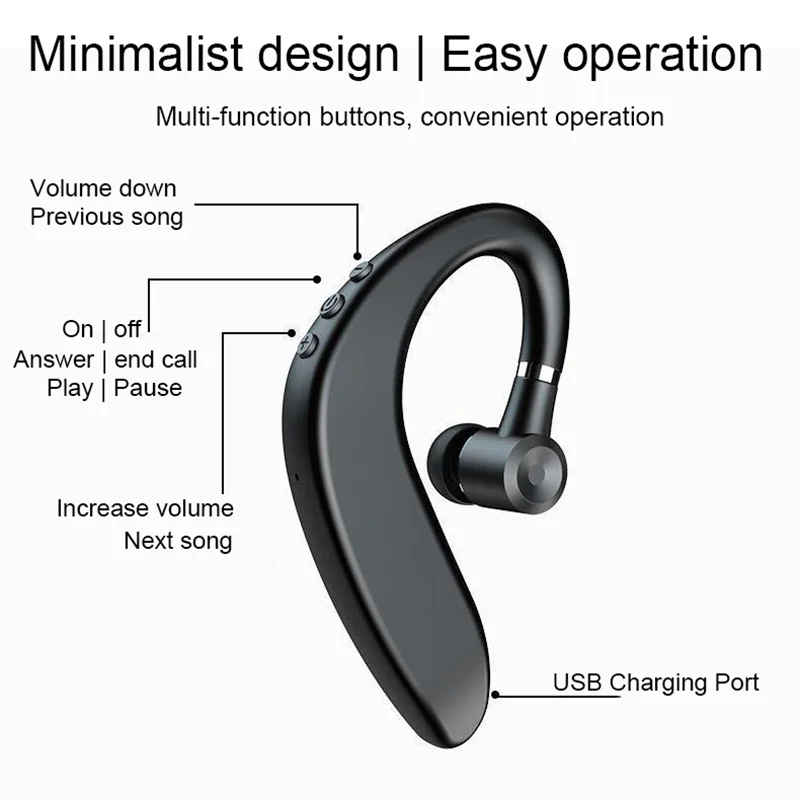 S109 Bluetooth Headphone TWS Wireless Ear Hook Earphone HiFi Stereo HD-Calling Noise Reduction Headset Earbuds Long Playing Time